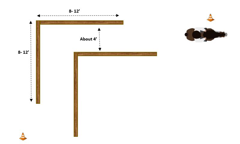 | 3 | From start cone, position yourself at the start of the L, back the entire L using leg and body signals only. Exit. |