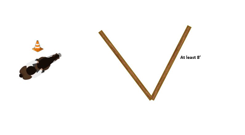 | 2 | From start cone, step over the end of the pole, straddle sidepass right the entire V. Exit. |