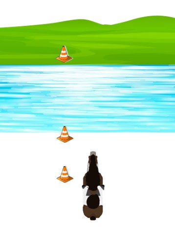| 3 | From start cone, enter water at cone, stand in center on loose rein for 3 seconds, exit at the exit cone. |