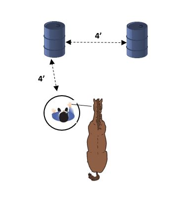 | 3 | FSC, dismounted, move to handler area, send equine forward between barrels and around the barrel to the left and then through the barrels to right in figure 8 pattern, have equine return to handler while handler remains standing in handler area. Exit. |