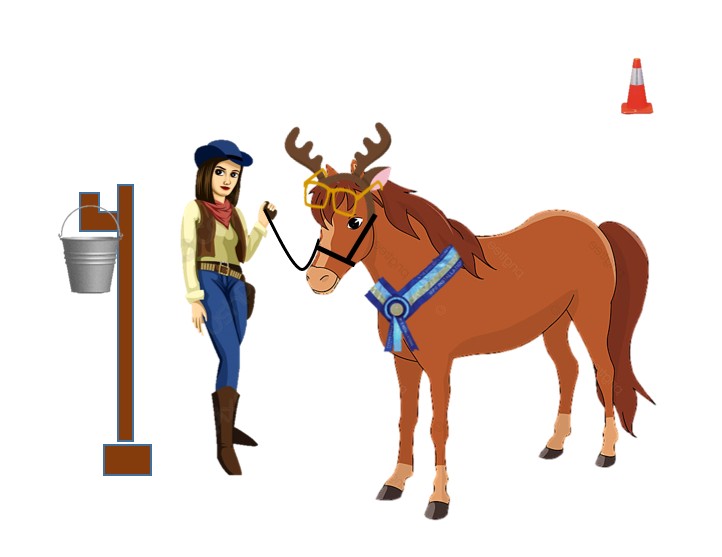 | 3 | Dismounted, from start cone, walk to the the bucket of items and adorn you and your horse with 3 items each. Stand for 3 seconds. Return items to bucket. Exit. |